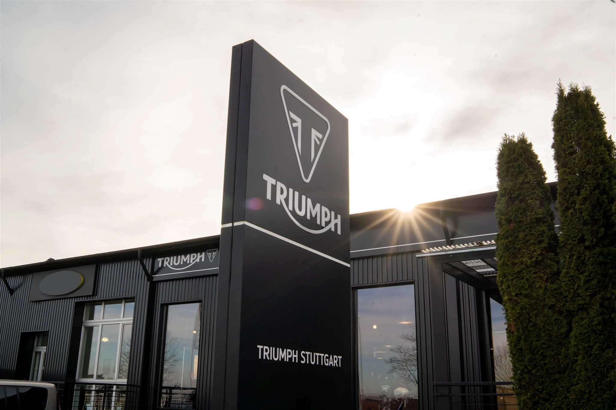Im Oktober 2007 haben wir den „Flagship Store“ TRIUMPH STUTTGART eröffnet, welcher heute aus der TRIUMPH Landschaft nicht mehr weg zu denken ist. Als nächstes Projekt wird im Herbst/Winter 2009/2010 unser Ladengeschäft in Eningen zum TRIUMPH World Store ausgebaut und unter dem Namen TRIUMPH NECKAR-ALB by SBF geführt. Somit verfügt die SBF TRIUMPH BIKES & PARTS GmbH und Co.KG heute über einen weltweiten Versandhandel mit rund 2000 Lagerartikeln für TRIUMPH Motorräder. Des weiteren mit TRIUMPH STUTTGART und TRIUMPH NECKAR-ALB über 2 TRIUMPH Laden-Geschäfte welche zusammen rund 800 m² Verkaufsfläche, 250 m² Lager und ca. 250 m² Werkstattbereich bieten. Alles in allem zählen ca. 5000 TRIUMPH Fahrer*innen zu unserer Kundschaft.
