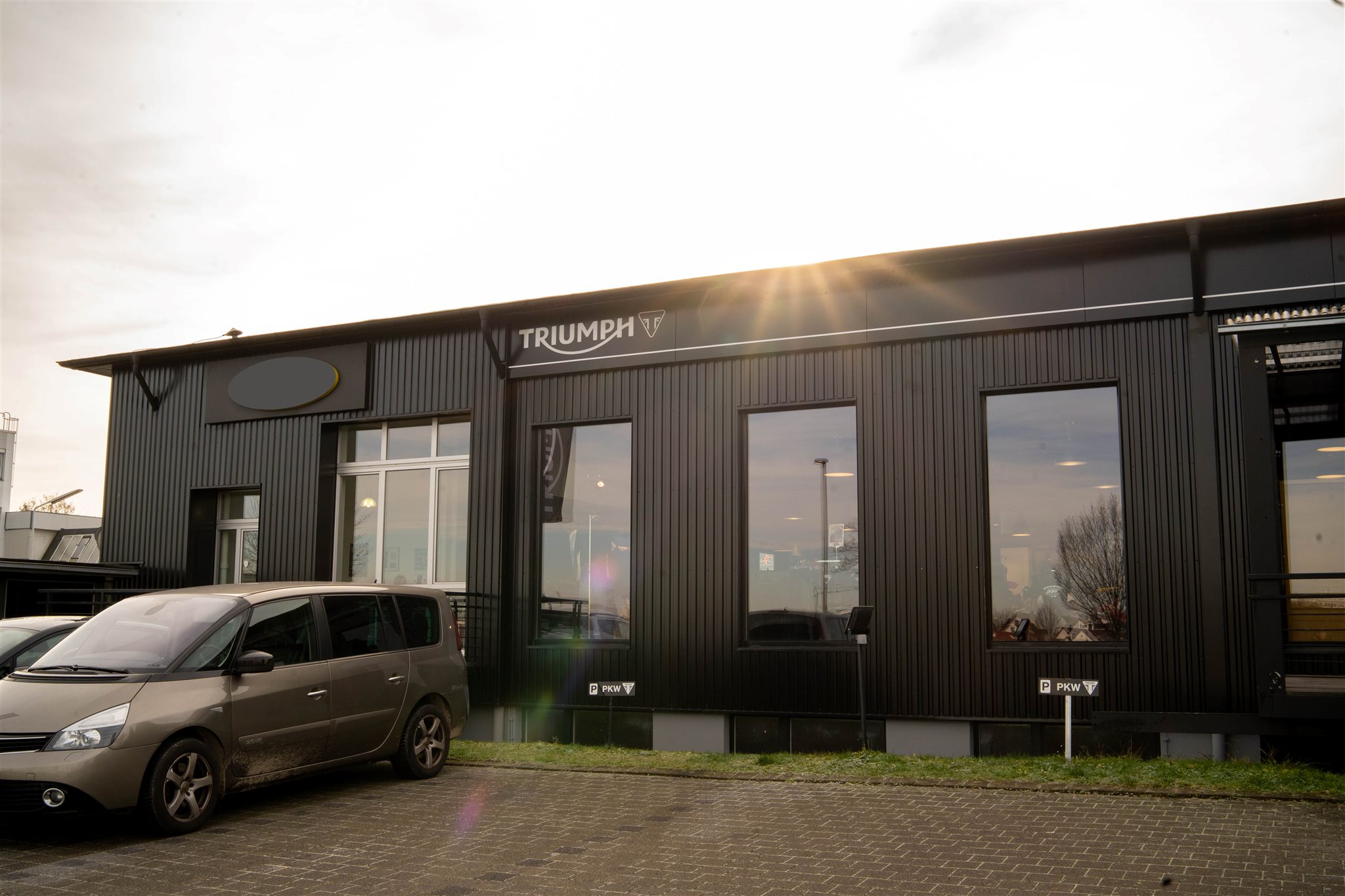 Wir hatten die erste Anfang des Jahres 1982, wo wir kurzerhand eine stillgelegte Metzgerei gemietet und ausgeräumt haben. So entstand im August 1982 unser erster eigener Motorradladen. Die Räumlichkeiten wurden schnell zu klein und so ließ die nächste SCHNAPSIDEE nicht lange auf sich warten: "Wir mieten keinen größeren Laden, sondern wir bauen uns einen!“ Gesagt getan und so bezogen wir im März 1990 unseren Betrieb in Eningen. Die nächste Schnapsidee kam noch im selben Jahr. Wir hatten einen kleinen Bericht in einer Fach-Zeitschrift gelesen, in welchem stand, dass TRIUMPH wieder auferstanden ist. Noch am selben Tag war unsere Bewerbung auf der Post. Anfang 1991 reisten wir dann mit dem Händlervertrag in der Tasche Richtung Frankfurt zum 1. TRIUMPH-Händler Meeting.