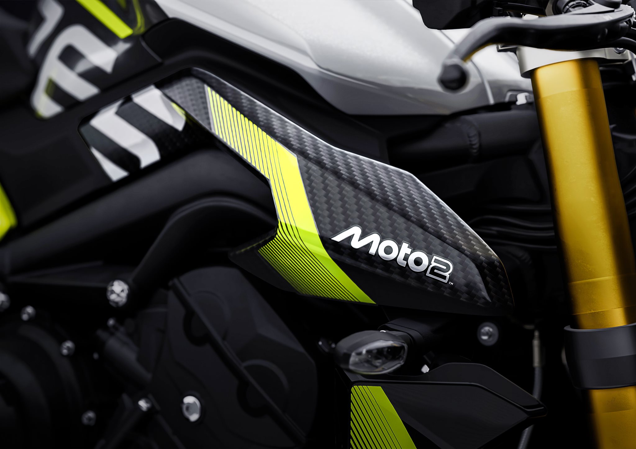 Edle Moto2-Lackierung mit Akzenten in Triumph Performance Yellow.