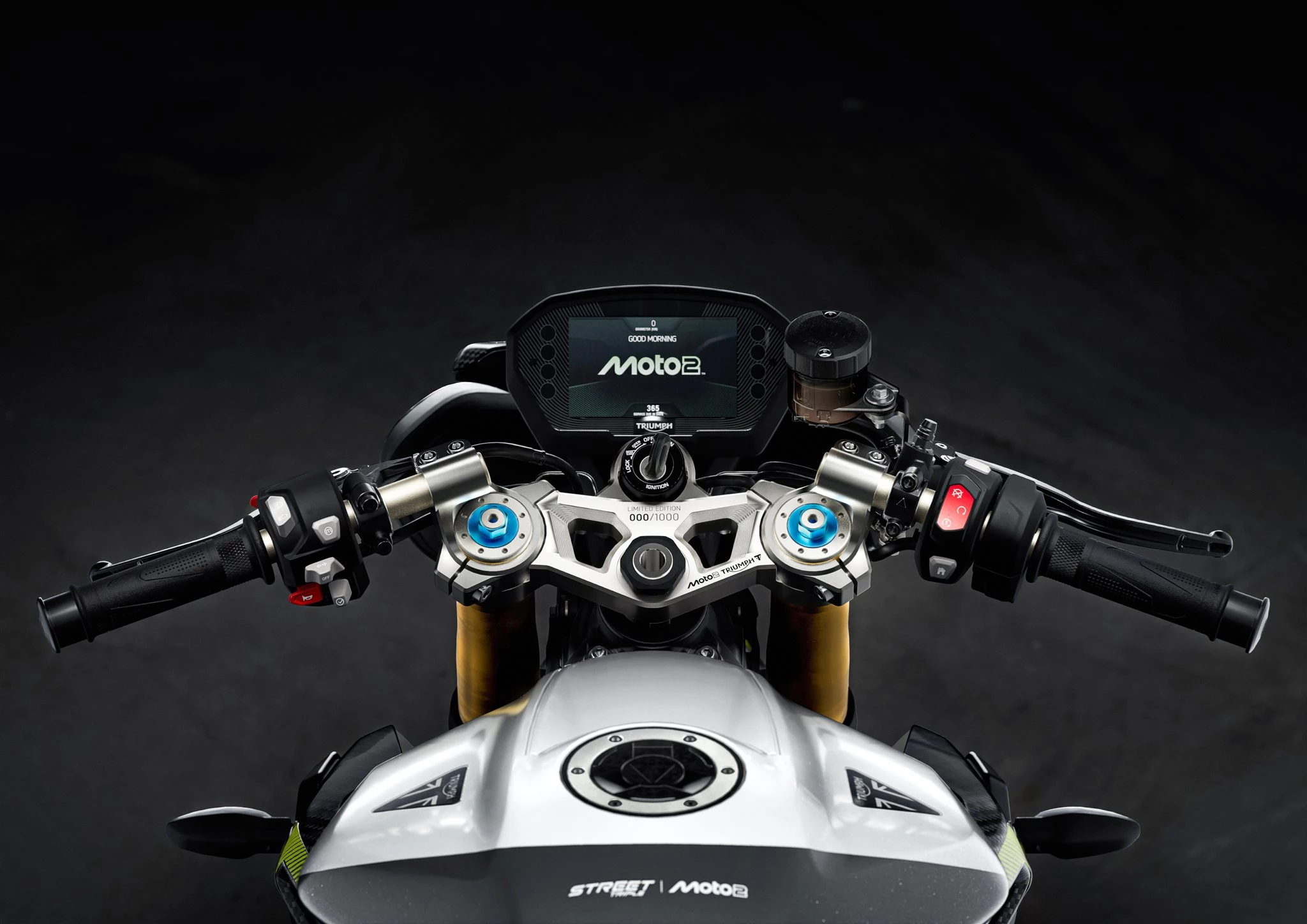 Limitiert auf eine Stückzahl von 1.000 Motorrädern jede Moto2 Edition verfügt über eine individuell nummerierte obere Gabelbrücke.