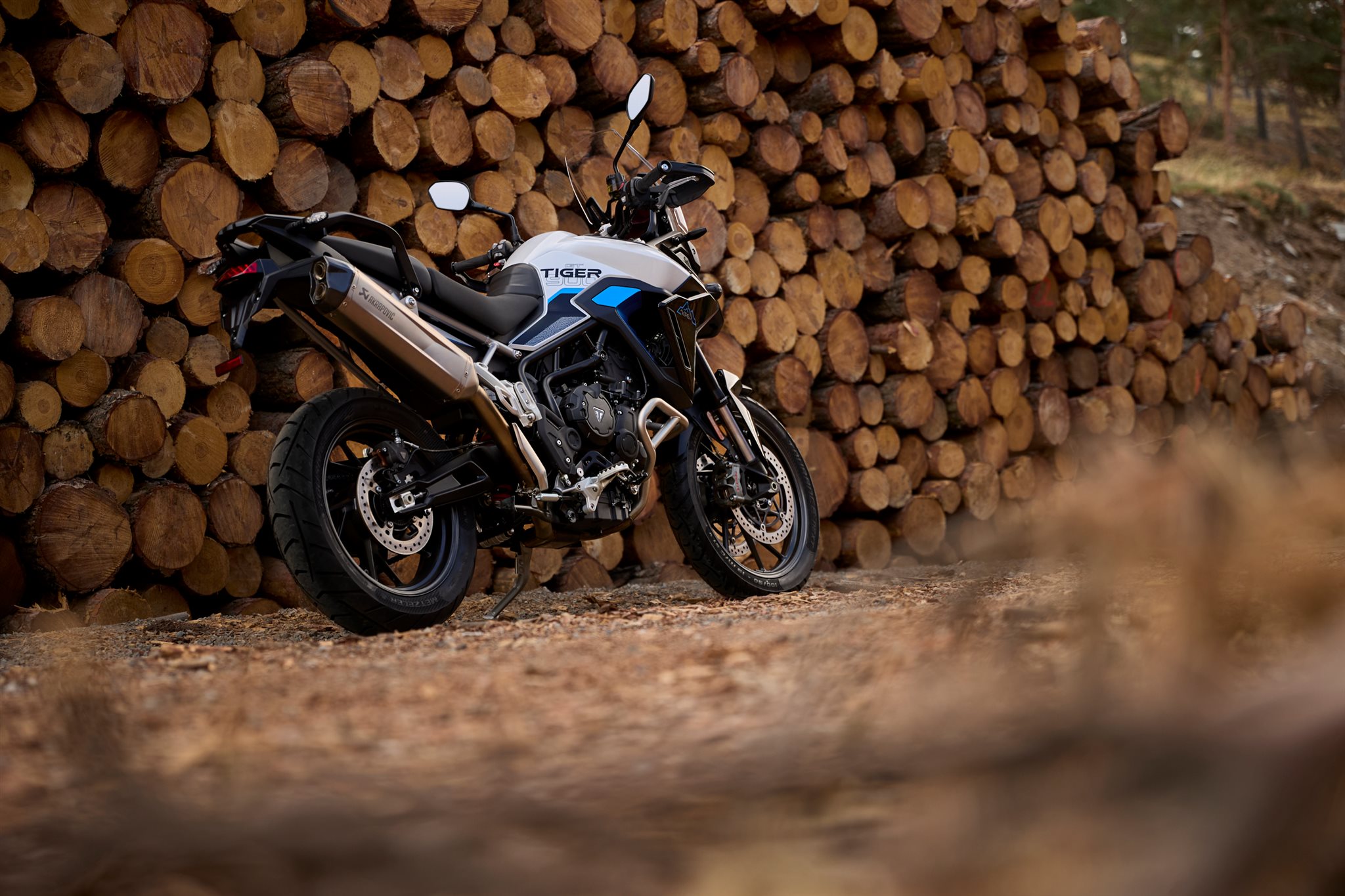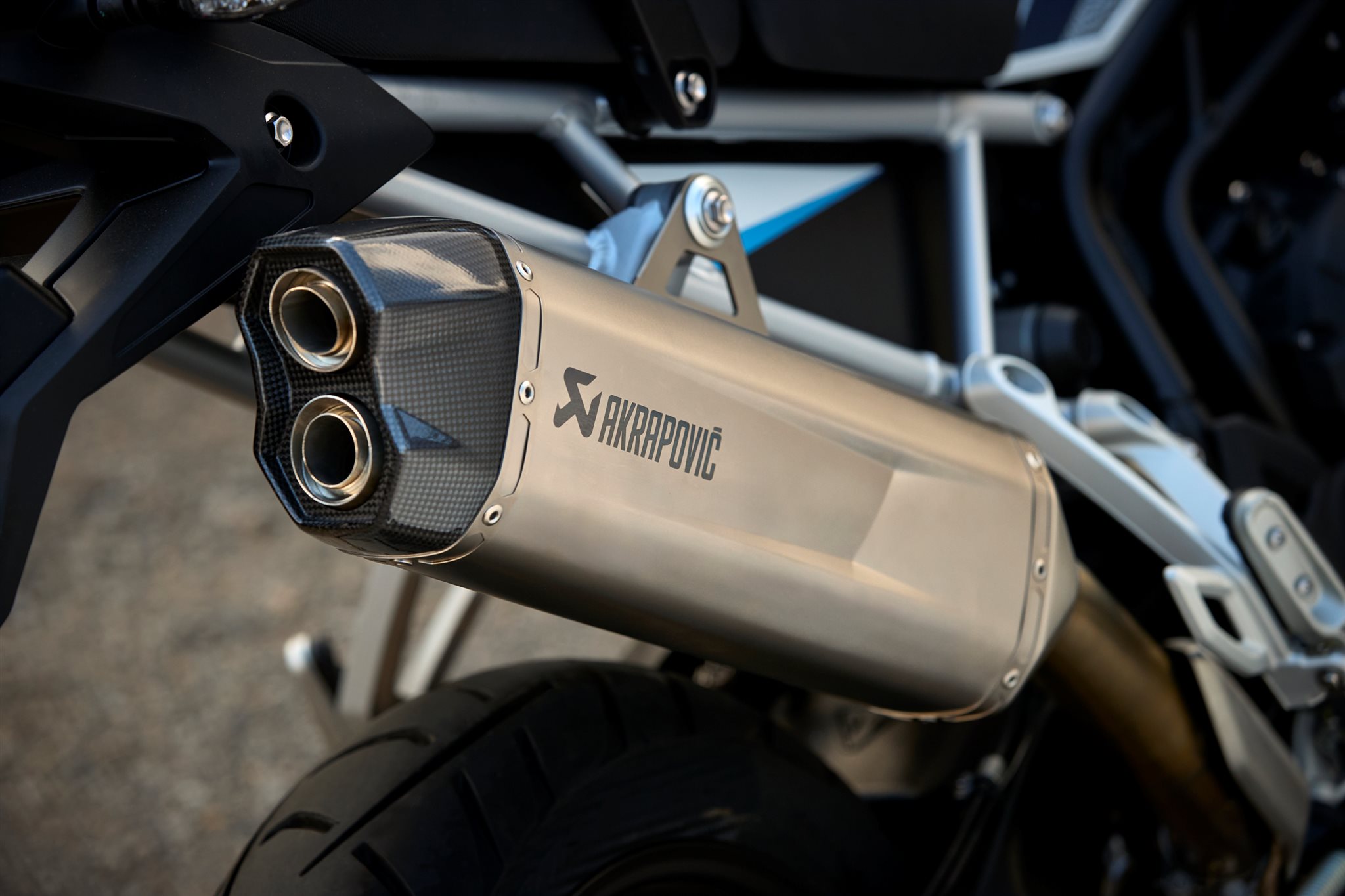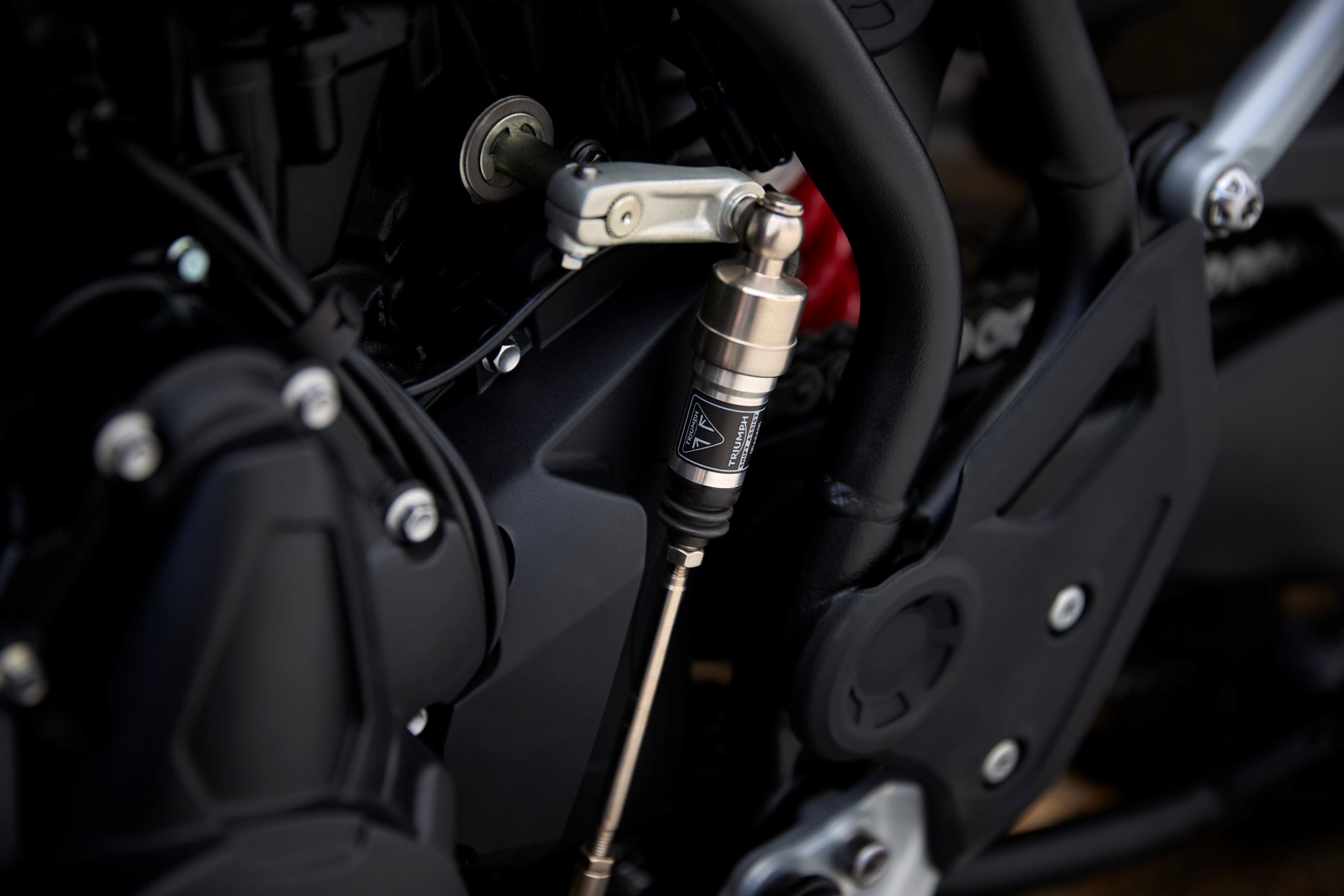 Der leichte und wunderschön gestaltete Akrapovic-Schalldämpfer verleiht eine markante Optik mit Endkappe aus Kohlefaser, direkterem Ansprechverhalten und dem charakteristischen Triple-Sound.