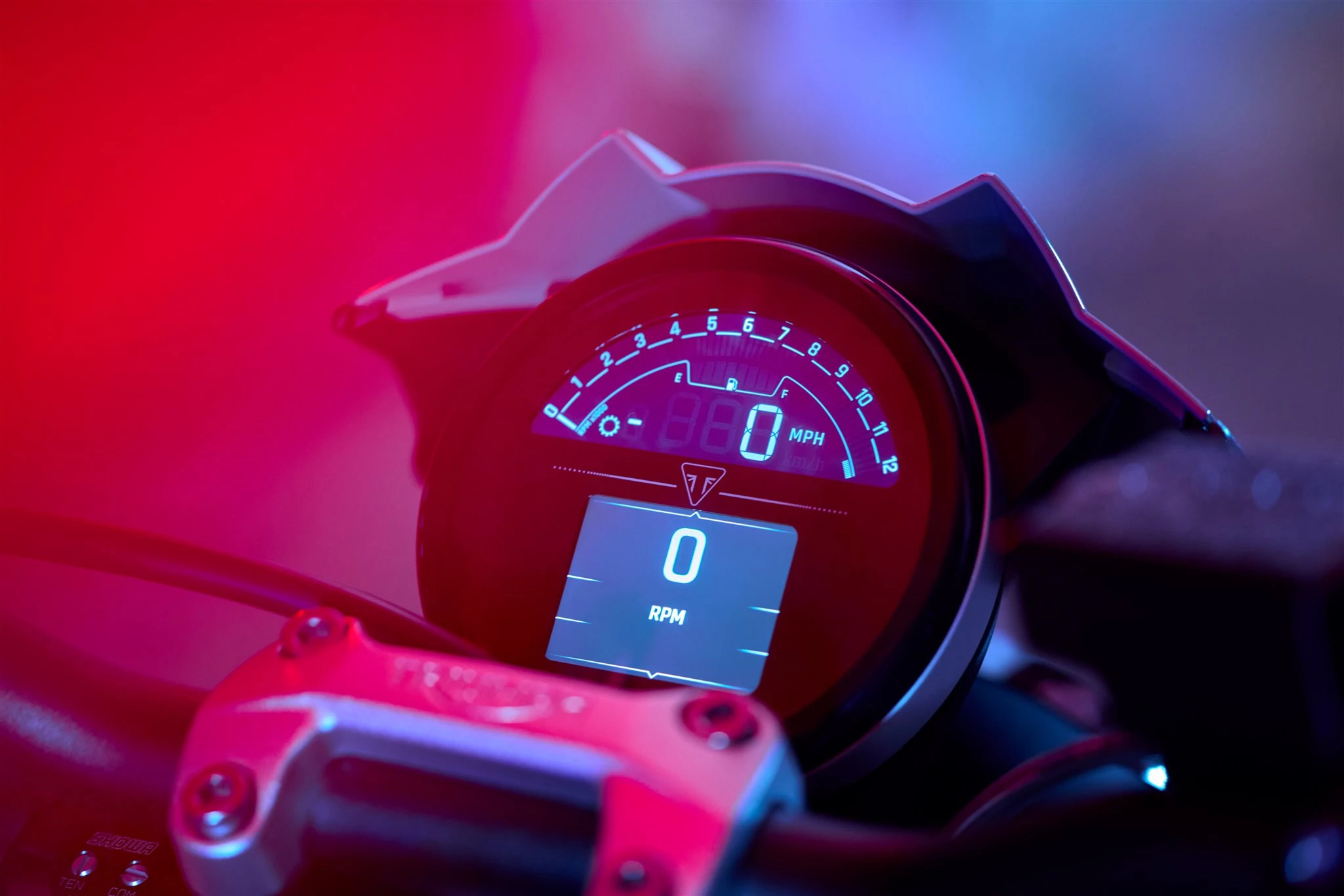 Alles Wichtige nichts Überflüssiges. Neigungswinkelabhängiges ABS und Traktionskontrolle, drei Fahrmodi sowie Triumph Schaltassistent für kupplungsloses Hoch- und Runterschalten.