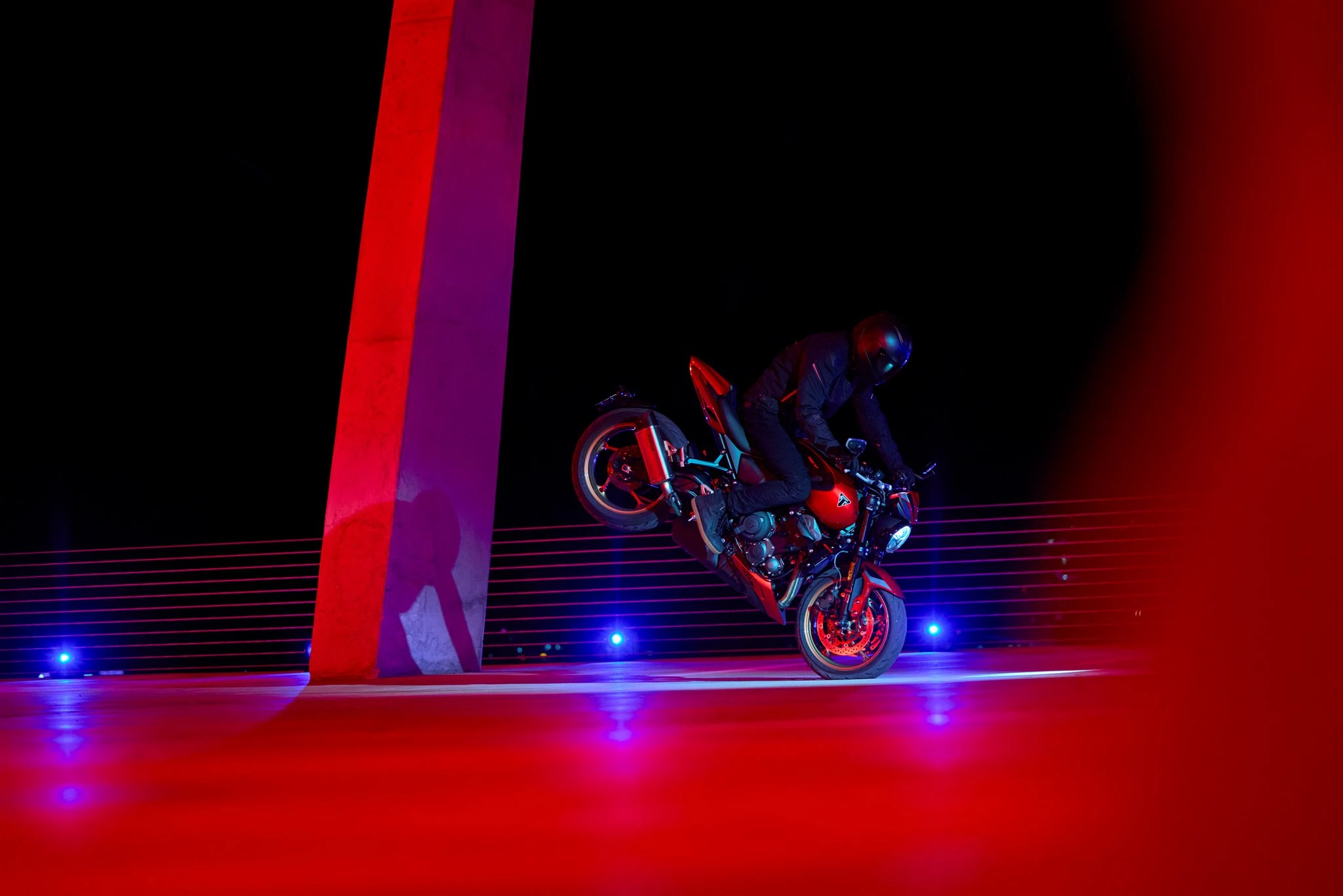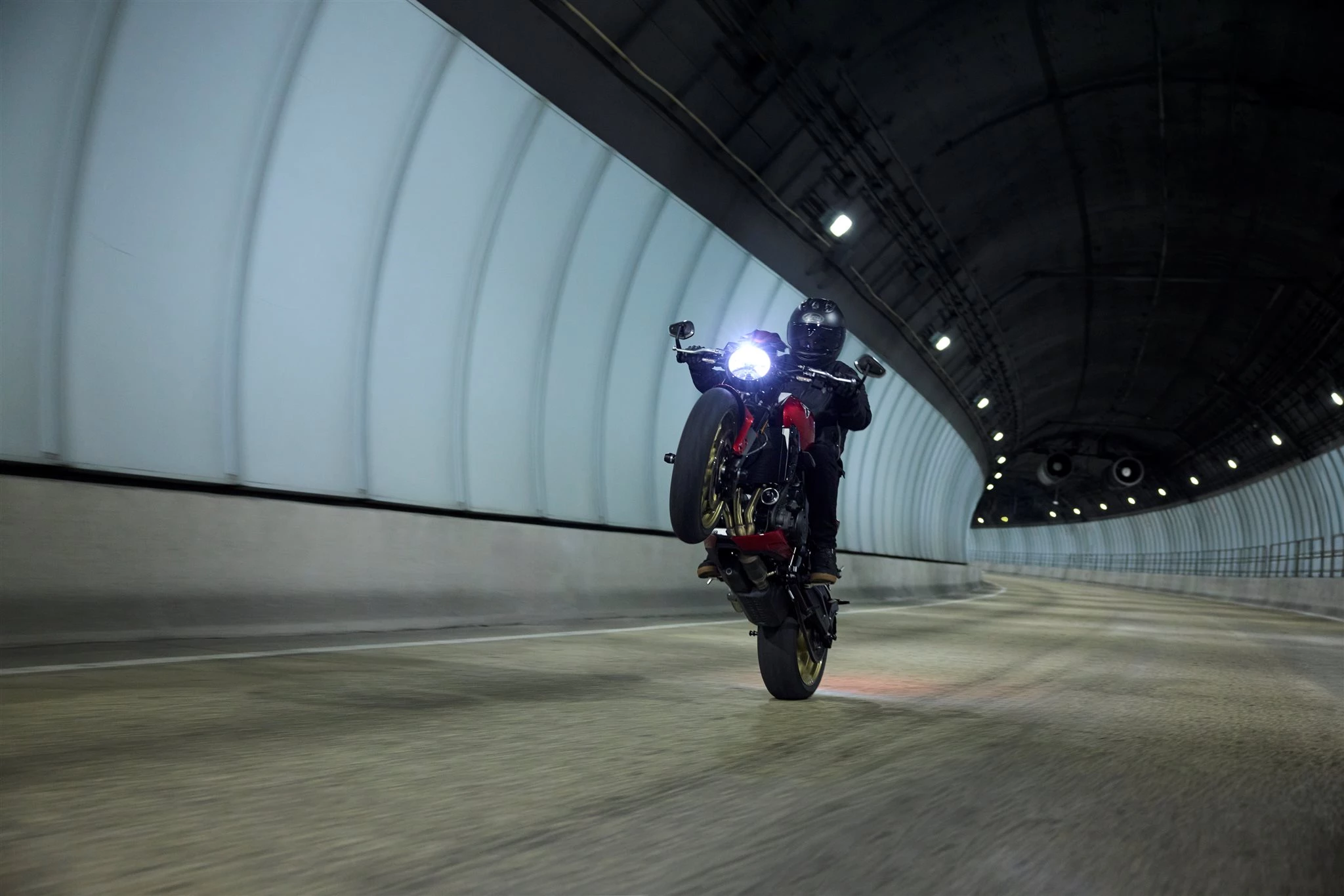 Mit einem Gewicht von weniger als 200 kg vollgetankt verbindet das agile, einstellbare Fahrwerk präzises Handling mit souveräner Beherrschbarkeit.