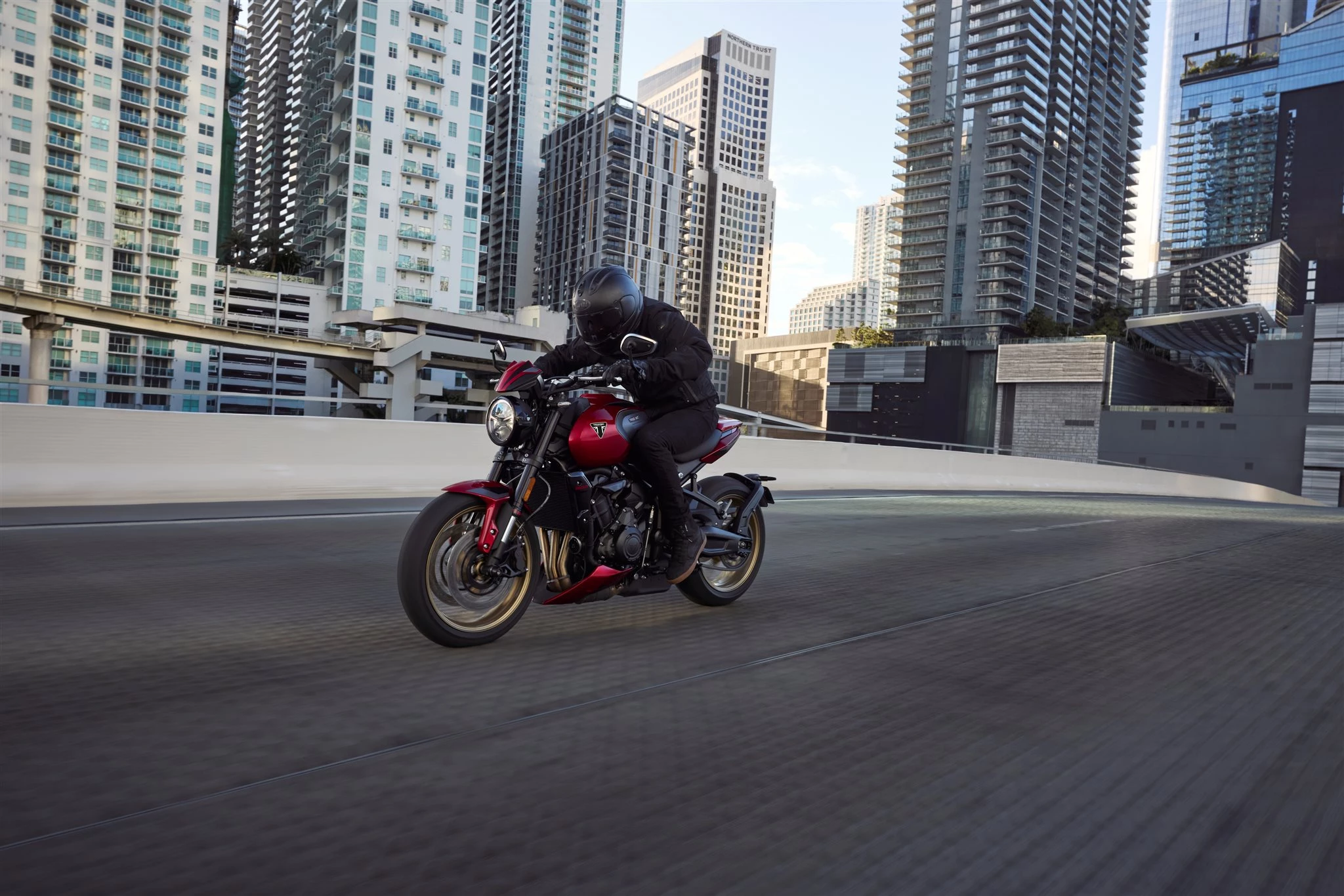 Atemberaubende Leistung und vorzügliches Handling, ein einzigartiges modernes Retro-Styling, erstklassige fahrerorientierte Technik sowie die bekannt hohe Verarbeitungsqualität und umfangreiche Ausstattung von Triumph.