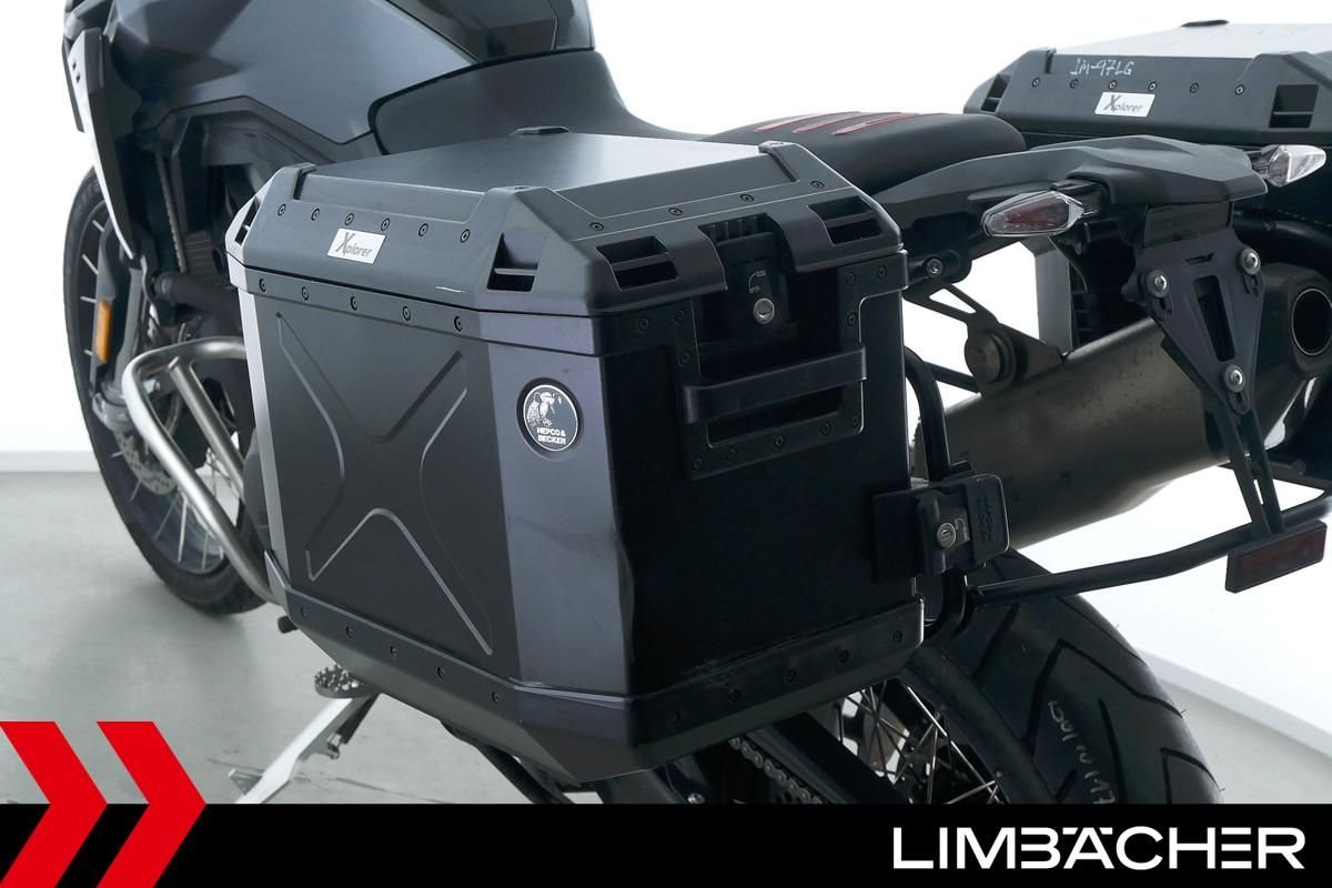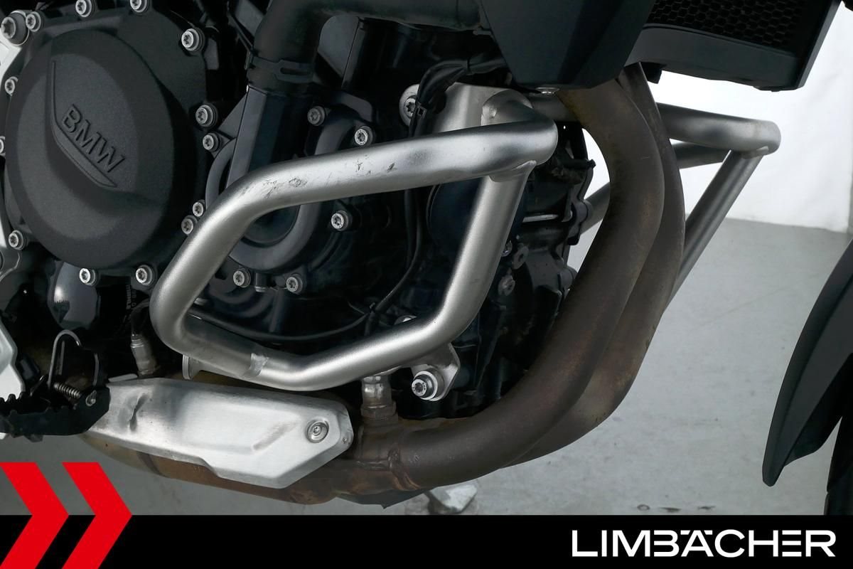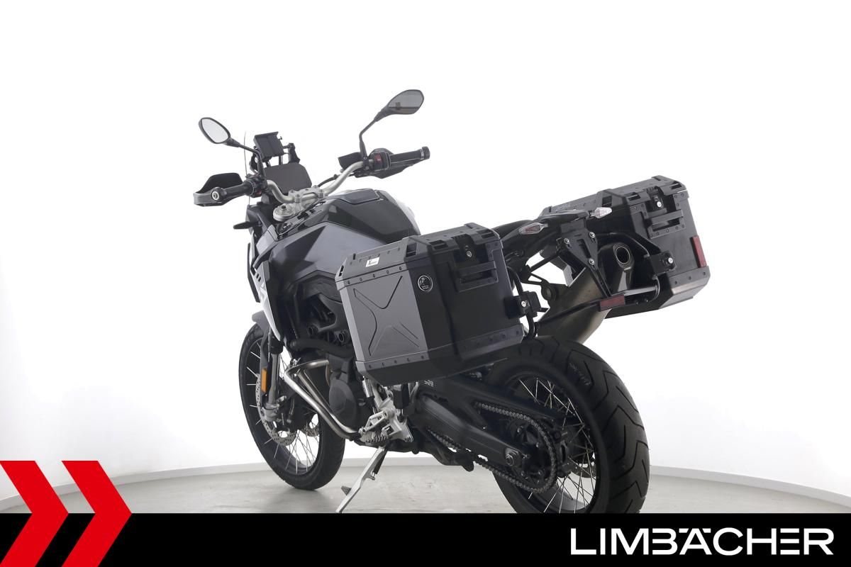 Eine scheckheftgepflegte BMW F 900 GS aus erster Hand in gebrauchtem Zustand u.a. mit Akrapovic-Endschalldämpfer sowie Hepco&Becker-Alukoffer-System.