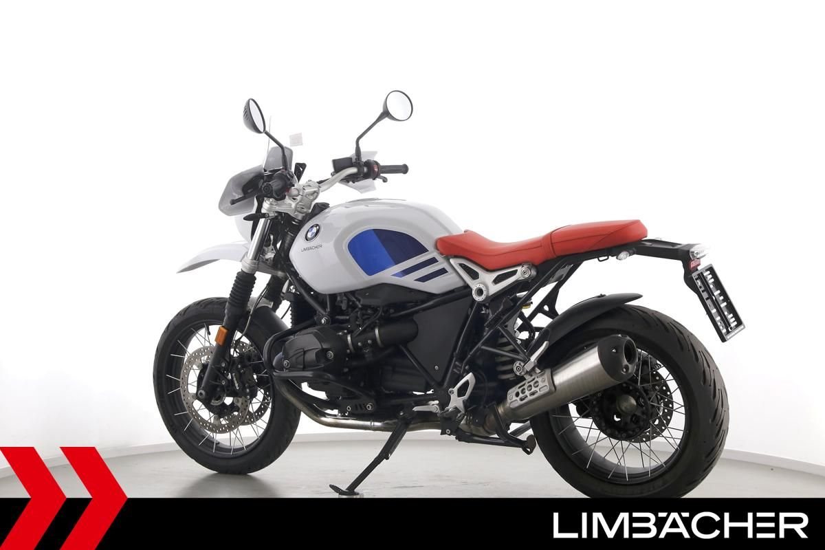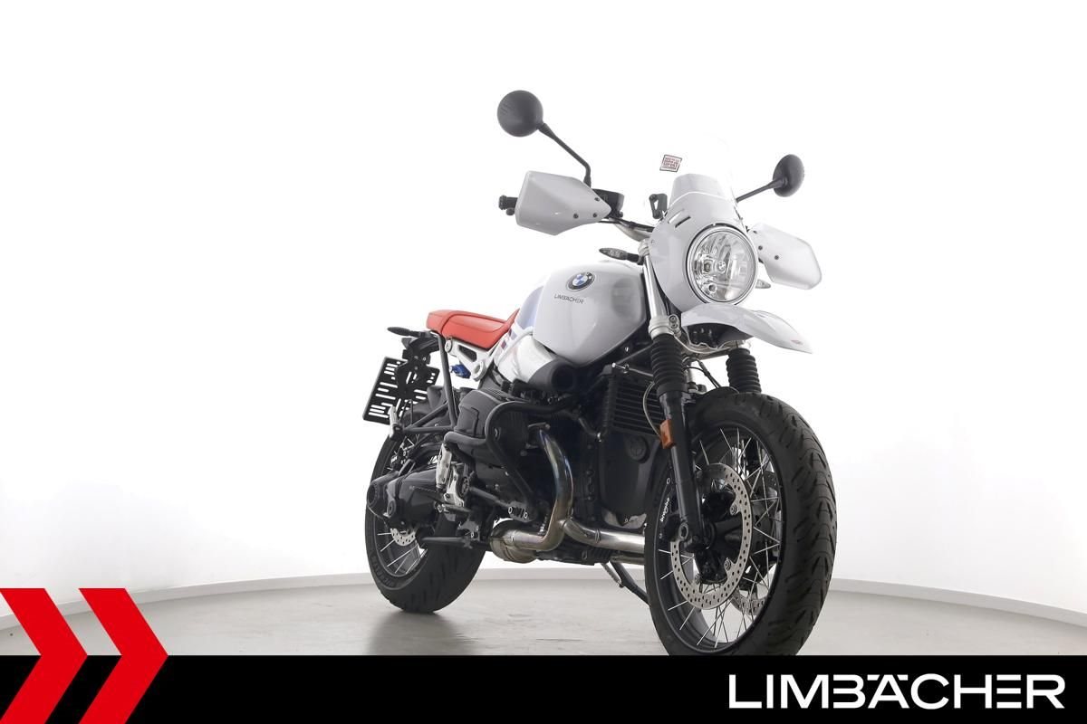 Eine scheckheftgepflegte BMW R nineT in gepflegtem Zustand u.a. mit Sturzbügeln und Scheibe.