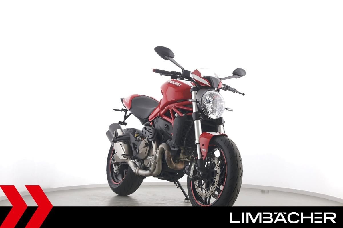 Eine scheckheftgepflegte Ducati Monster 821 Stripes aus erster Hand in gepflegtem Zustand u.a. mit kurzem Kennzeichenhalter sowie Ducati Performance LED-Blinkern.