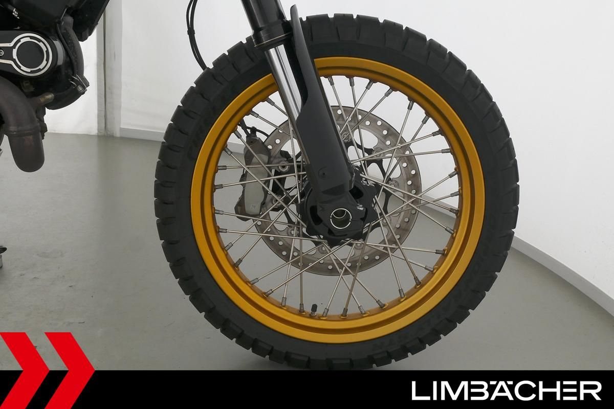 Eine Ducati Scrambler Desert Sled aus zweiter Hand in sehr gepflegtem Zustand u.a. mit G.P.R.-Endschalldämpfer sowie kurzem Kennzeichenhalter.