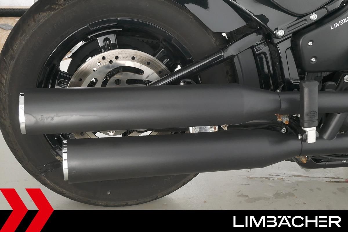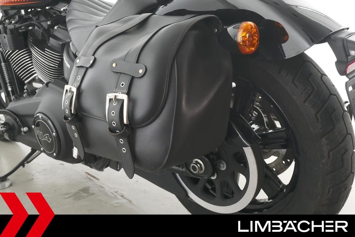 Eine Harley-Davidson Softail Street Bob 114 FXBBS in sehr gepflegtem Zustand u.a. mit Sturzbügel sowie seitlicher Leder-Bobbertasche.