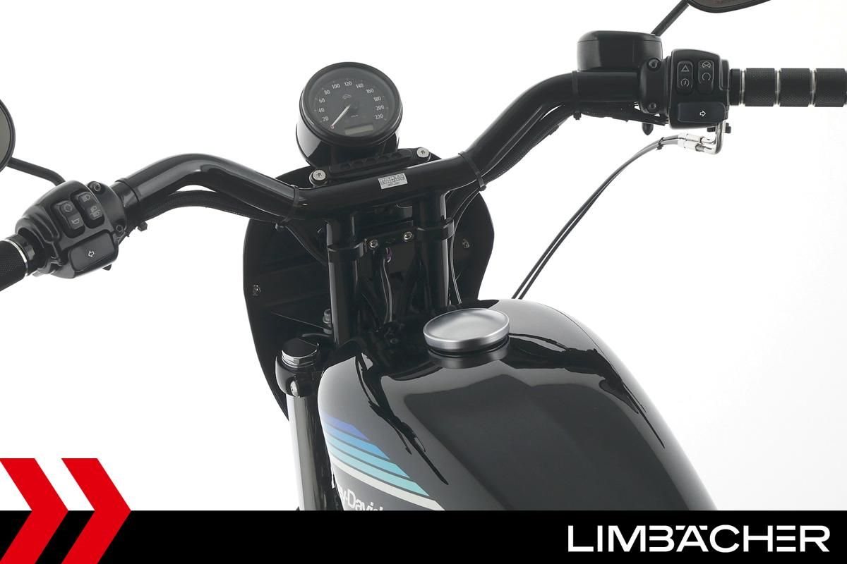 Eine Harley-Davidson Sportster XL 1200 NS Iron in gepflegtem Zustand u.a. mit Miller-Endschalldämpfer und Parts-Europe-Sonderlenker.