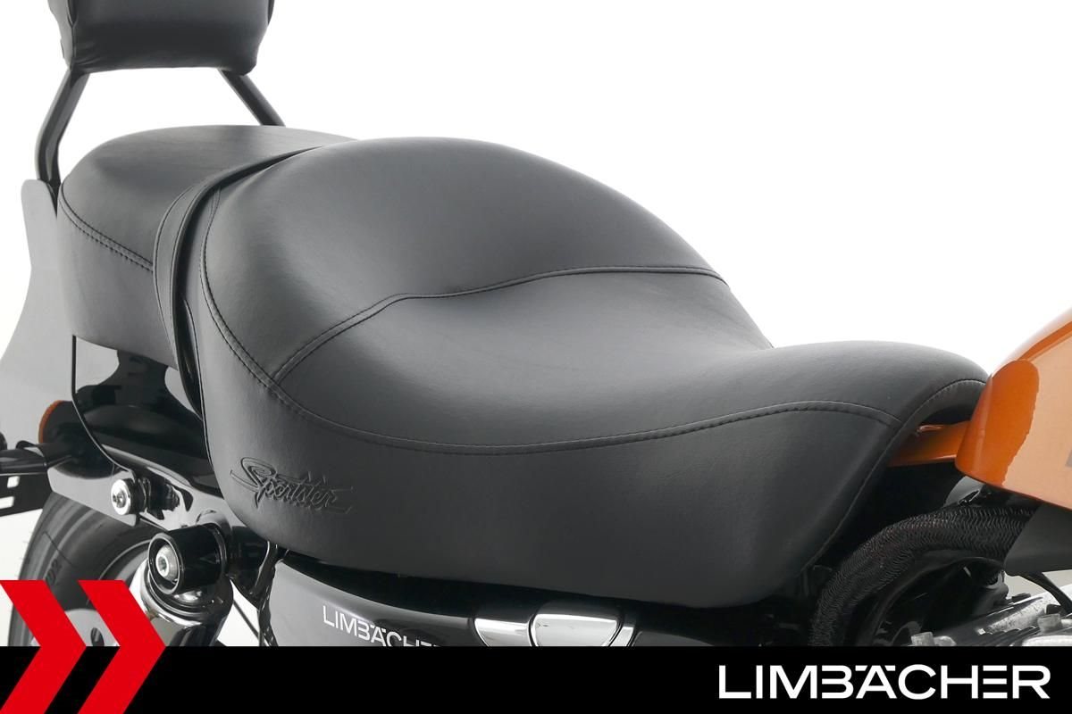 Eine Harley-Davidson Sportster XL 1200 X Forty Eight aus erster Hand in gepflegtem Zustand u.a. mit Miller-Endschalldämpfer und Komfort-Doppelsitzbank.