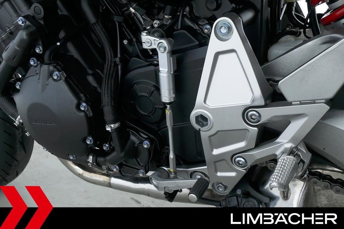 Eine scheckheftgepflegte Honda CB 1000 R aus zweiter Hand in sehr gepflegtem Zustand u.a. mit Shark-Endschalldämpfer sowie Synto-Brems- und -Kuppungshebel.