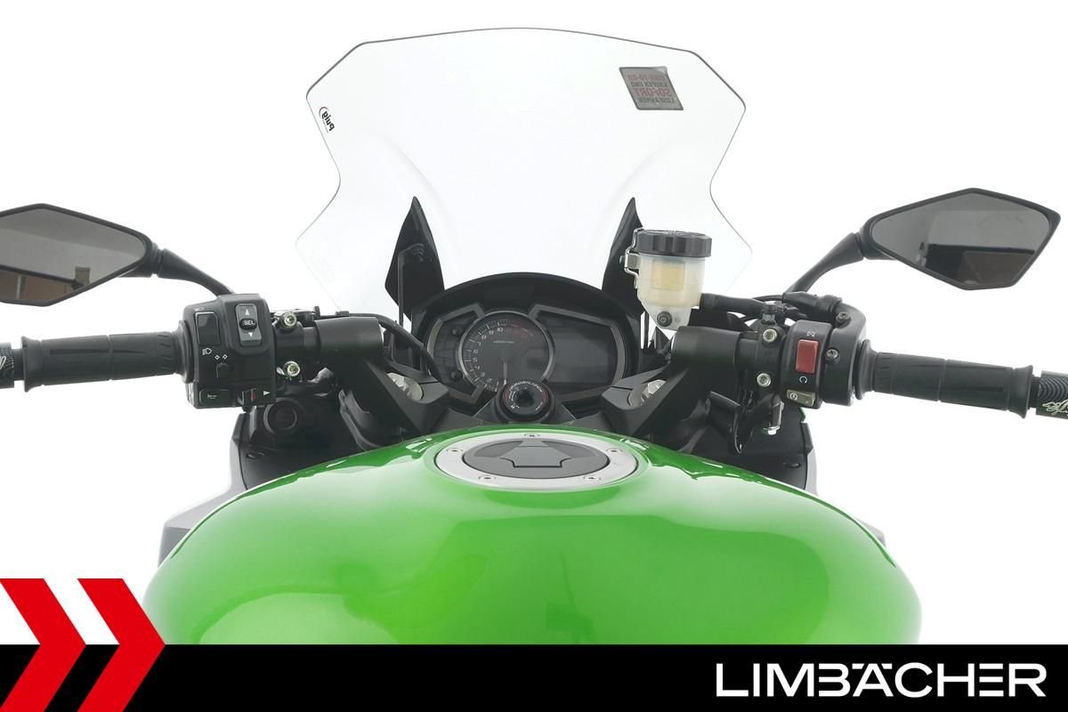 Eine Kawasaki Z 1000 SX in gebrauchtem Zustand u.a. mit LeoVince-Endschalldämpfer sowie kurzem Kennzeichenhalter.
