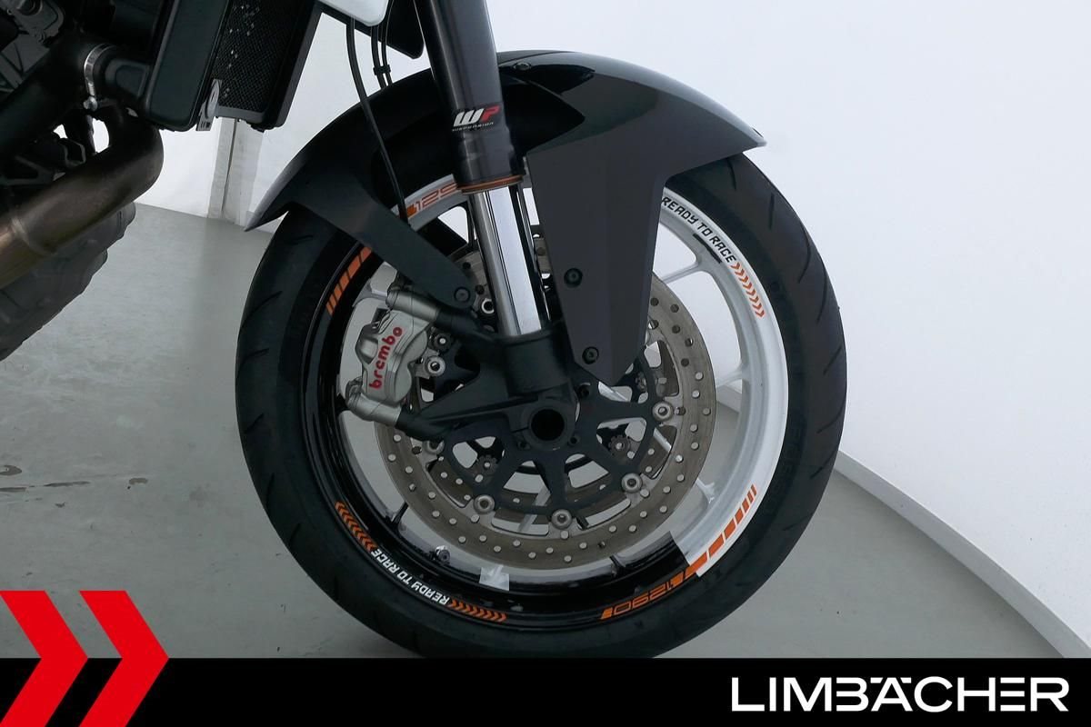 Eine scheckheftgepflegte KTM 1290 Super Duke R in gepflegtem Zustand u.a. mit Arrow-Endschalldämpfer sowie kurzem Kennzeichenhalter.