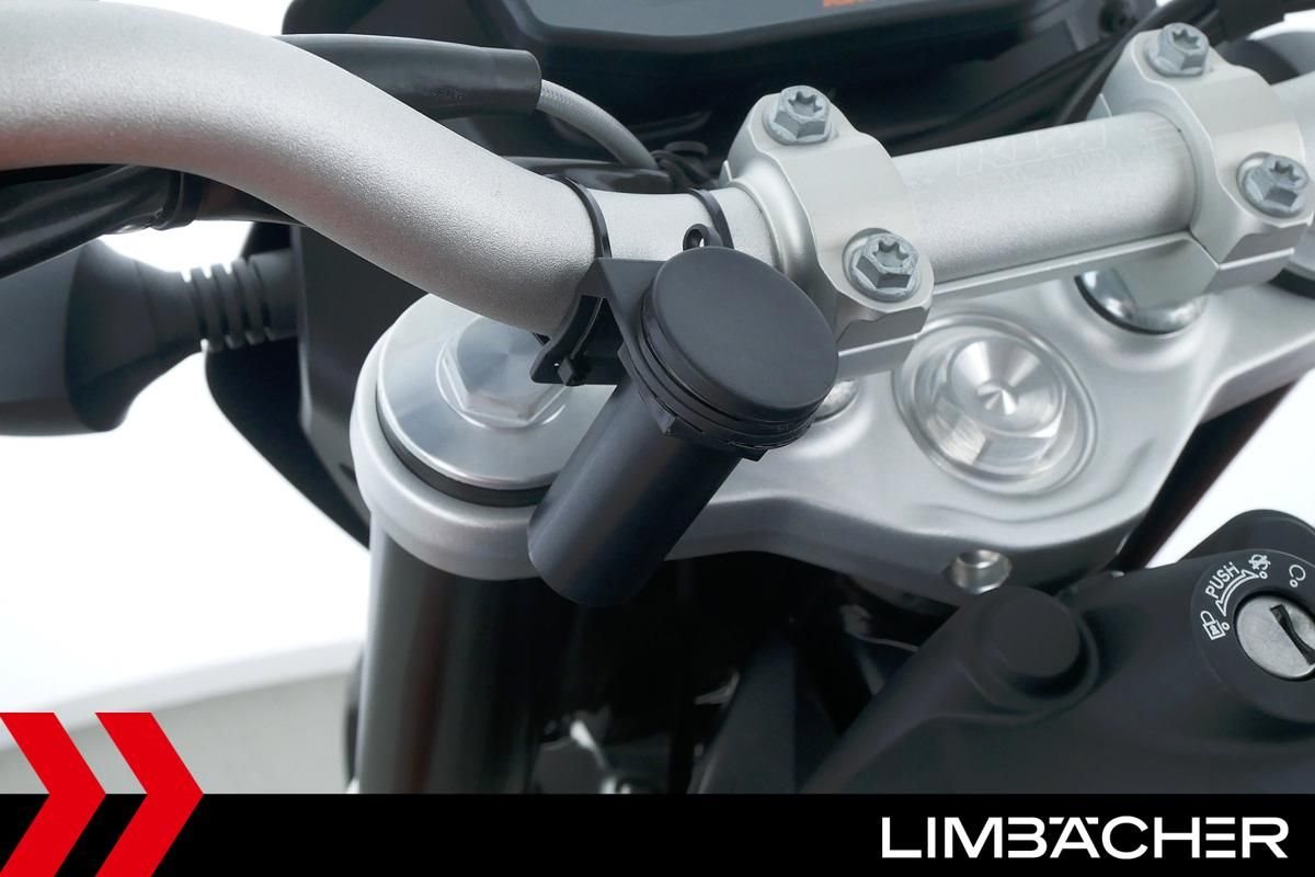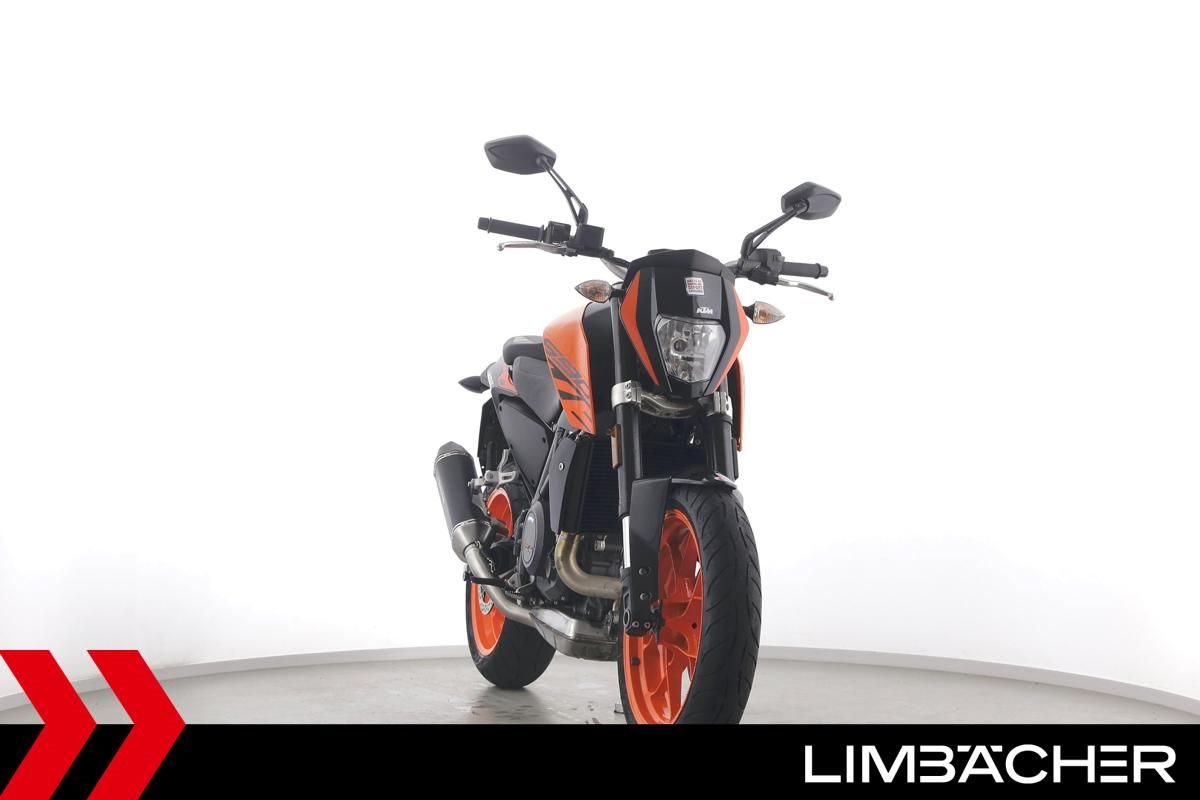 Eine scheckheftgepflegte KTM 690 Duke aus zweiter Hand in gepflegtem Zustand u.a. mit Remus-Endschalldämpfer sowie Montageheber-Aufnahmen.