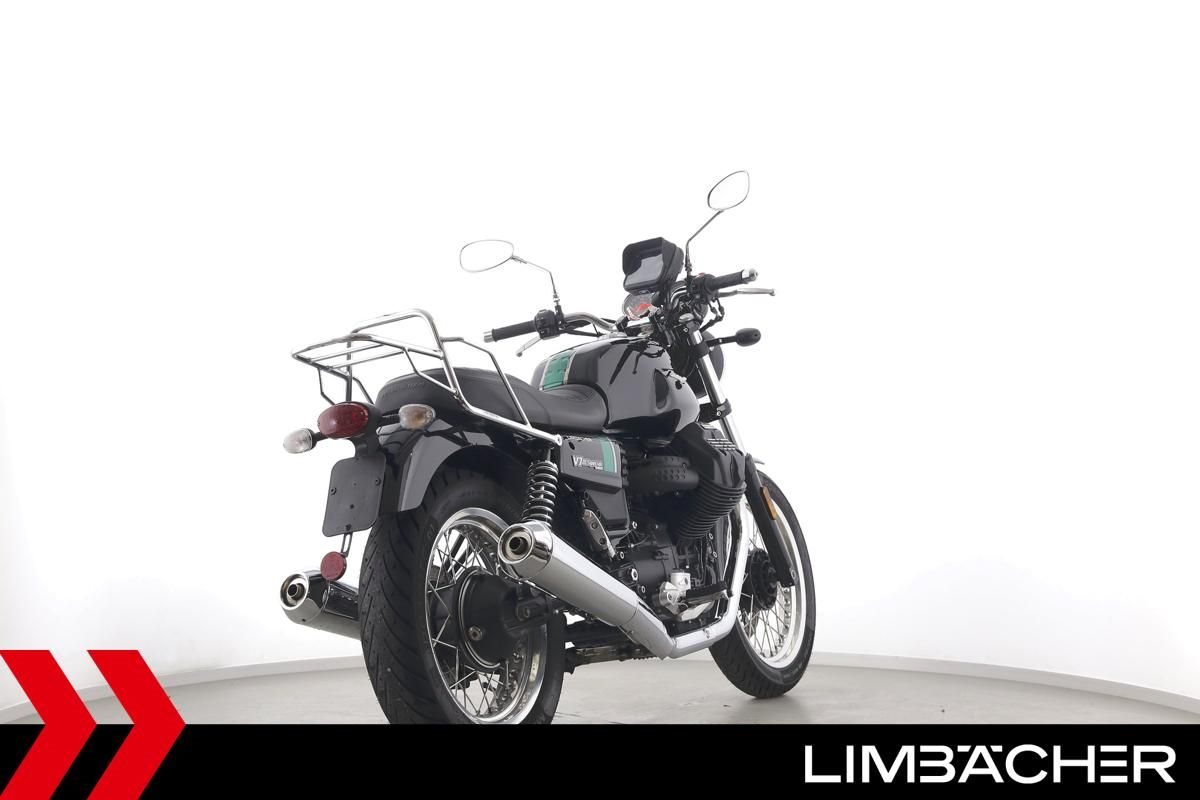 Eine scheckheftgepflegte Moto Guzzi V7 III Special aus erster Hand in gepflegtem Zustand mit Gepäckträger und GPS/Smartphonehalter.