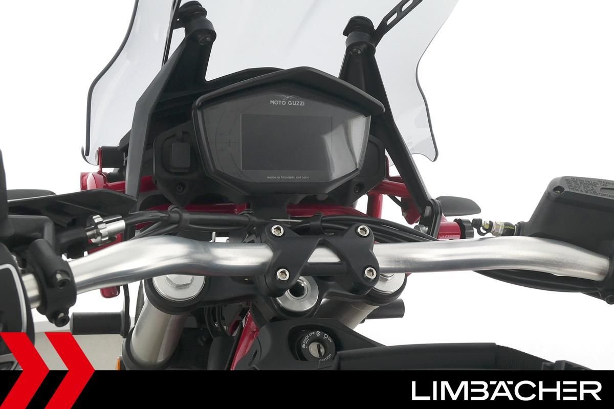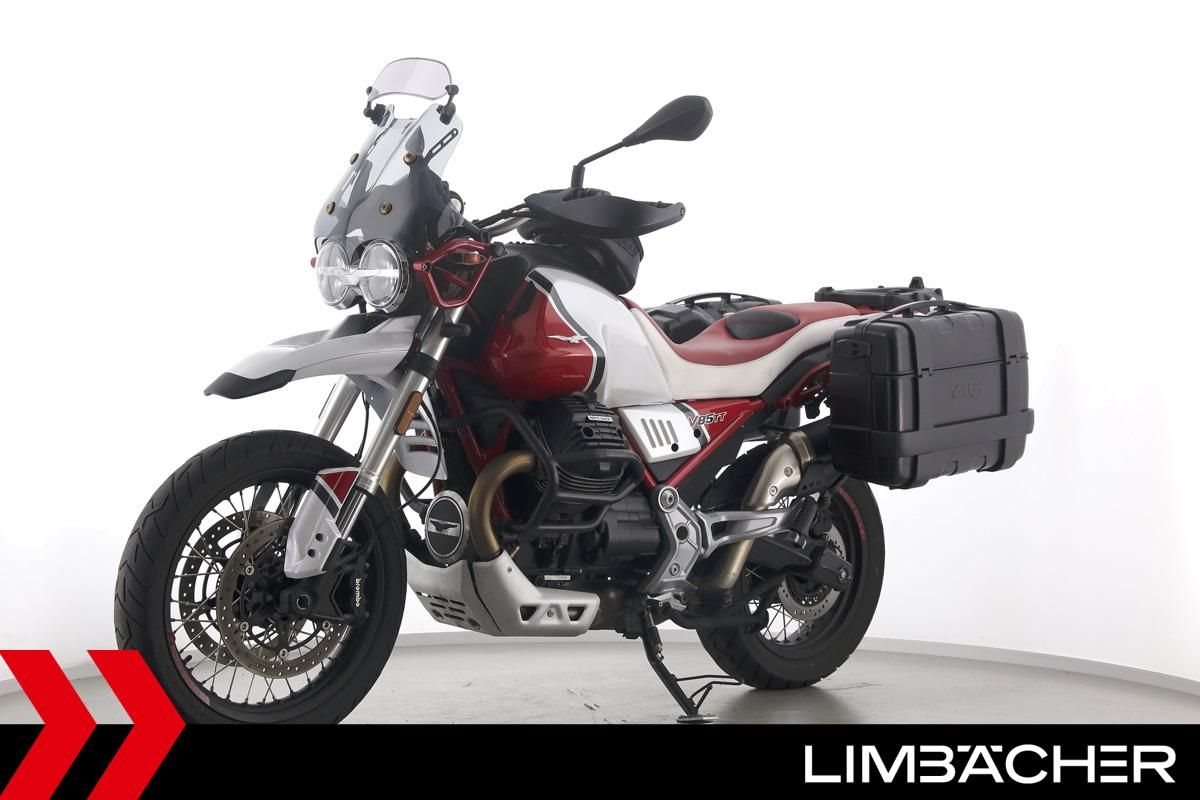 Eine Moto Guzzi V85 TT aus zweiter Hand in gepflegtem Zustand u.a. mit Givi-Koffersystem sowie Sturzbügeln in schwarz.