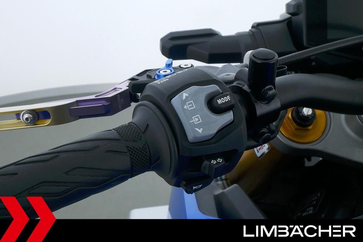 Eine scheckheftgepflegte Suzuki GSX-S 1000 aus zweiter Hand in gepflegtem Zustand u.a. mit Akrapovic-Endschalldämpfer sowie Raximo-Brems- und -Kupplungshebel.