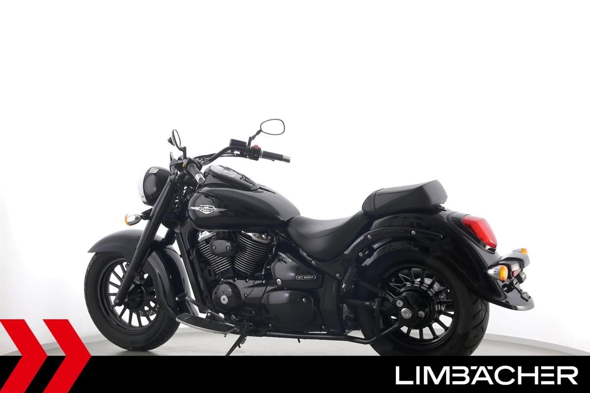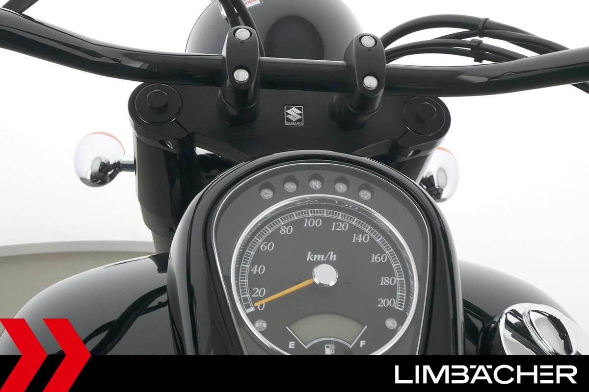 Eine scheckheftgepflegte Suzuki VL 800 C Intruder aus zweiter Hand in sehr gepflegtem Zustand u.a. mit Originalausstattung sowie Fahrer-Trittbrettern.