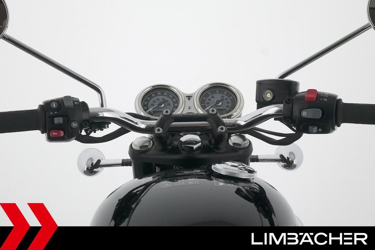 Eine Triumph Bonneville T120 Jet Black in Topzustand u.a. mit Tempomat und Riding-Modes.