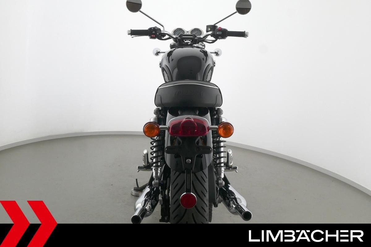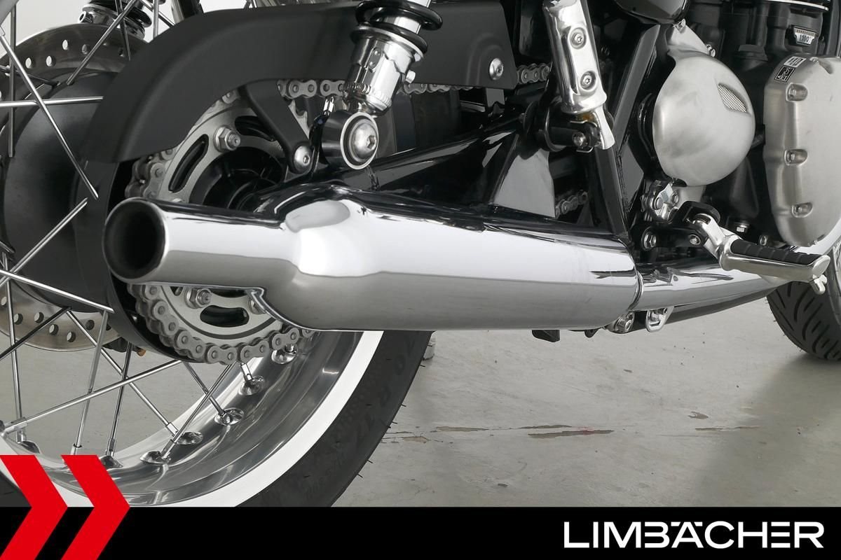 Wir bieten hier eine Triumph Bonneville T120 Jet Black. Alle unsere Fahrzeuge werden mit mindestens einem Jahr TÜV übergeben.
