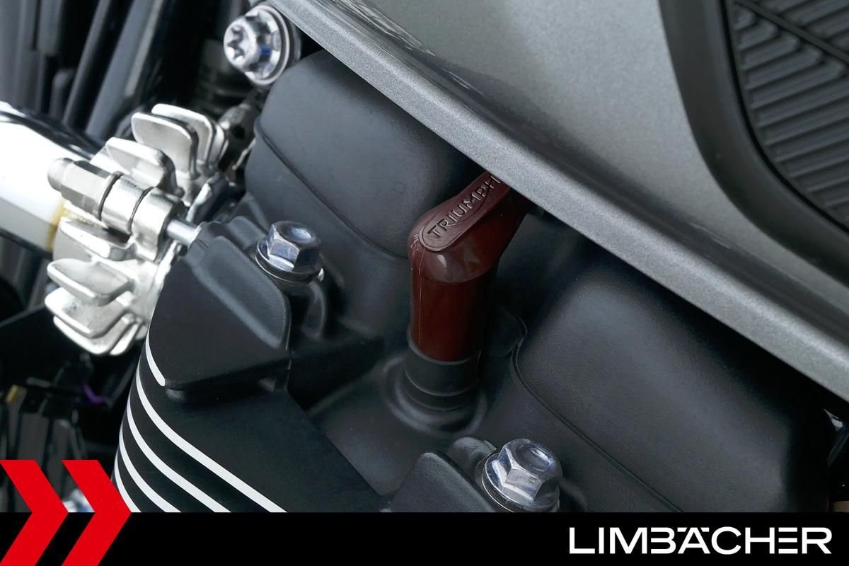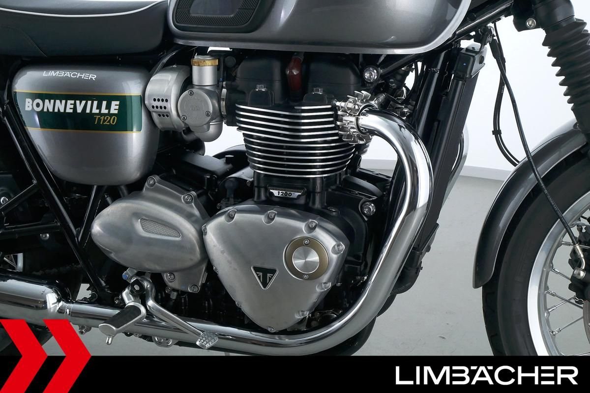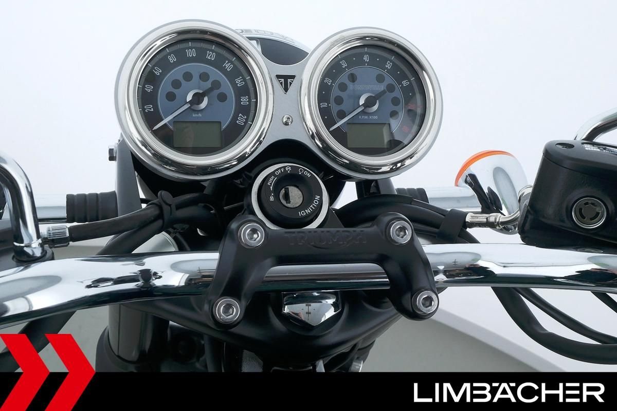 Eine scheckheftgepflegte Triumph Bonneville T120 aus erster Hand in sehr gepflegtem Zustand u.a. mit großem Hepco&Becker-Topcase und Temporegelung.