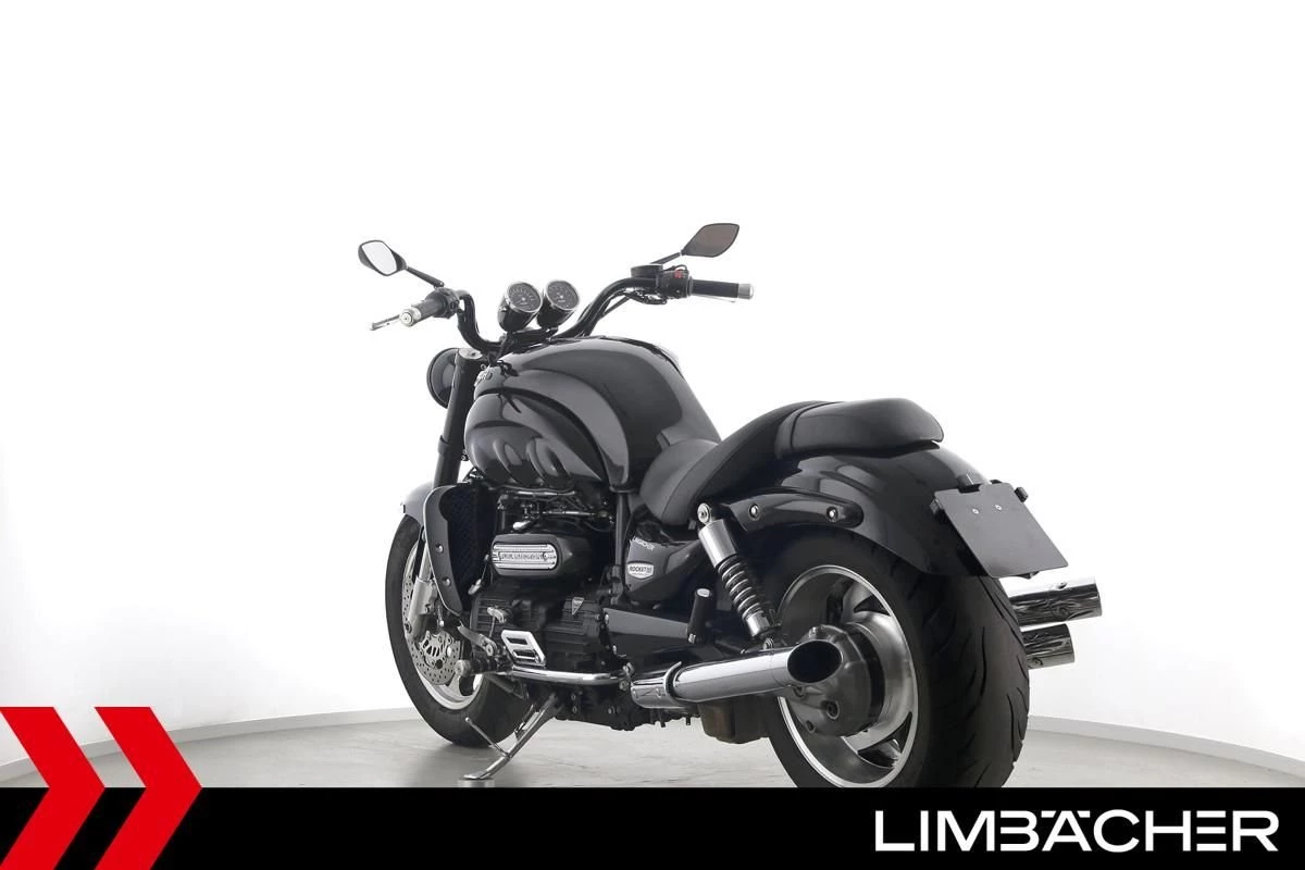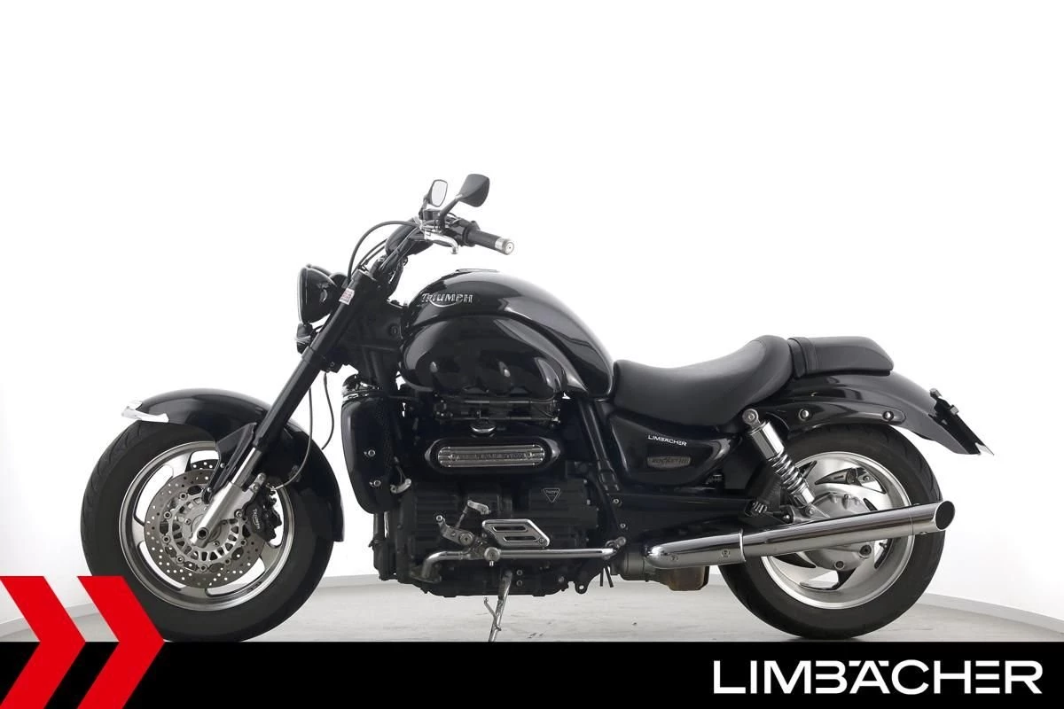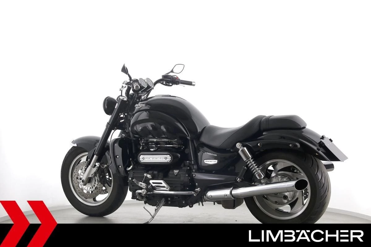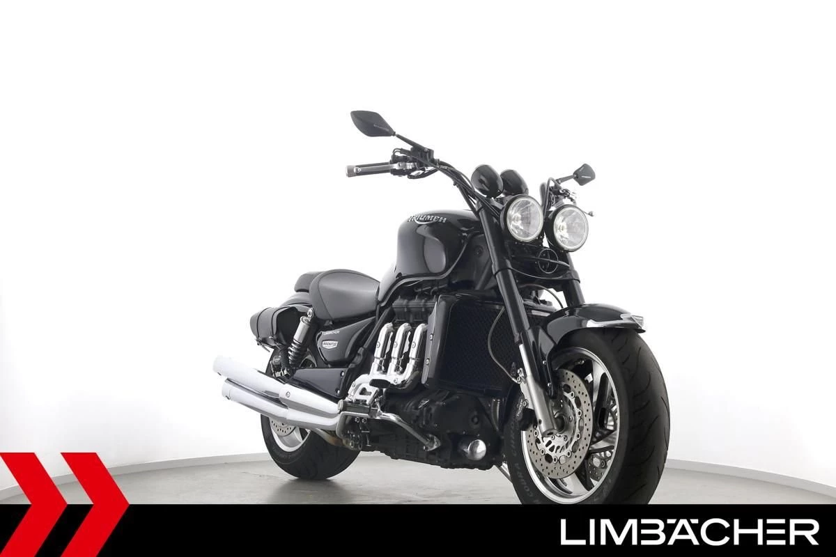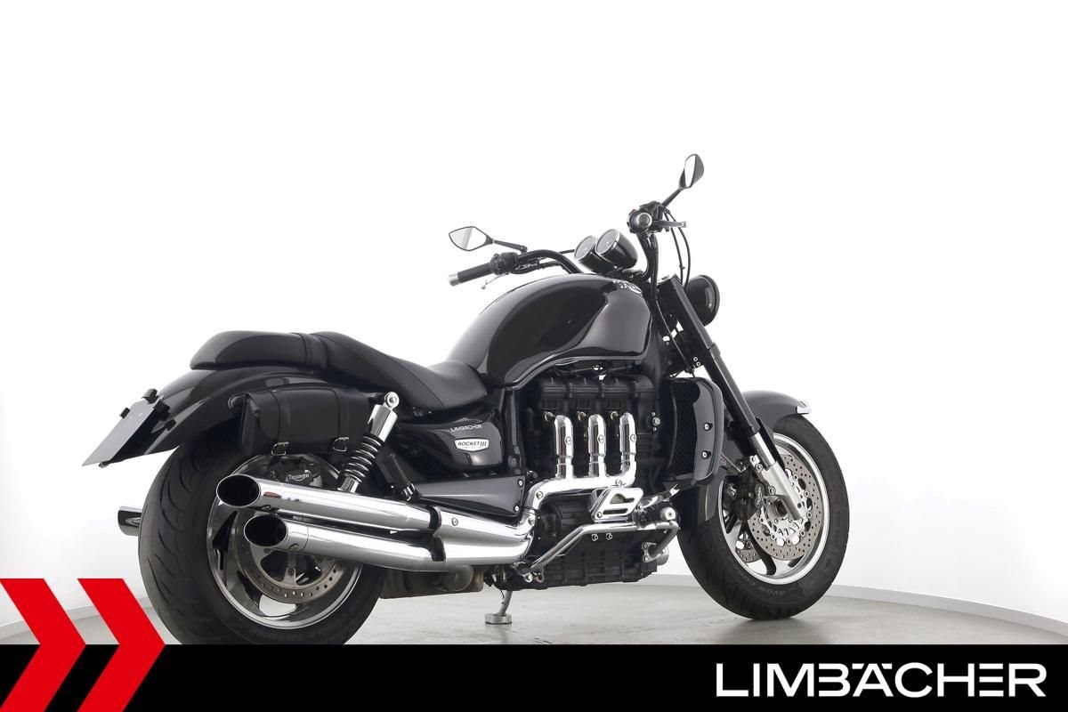 Eine Triumph Rocket III in gepflegtem Zustand u.a. mit kurzem Kennzeichenhalter sowie Highsider-Spiegel.