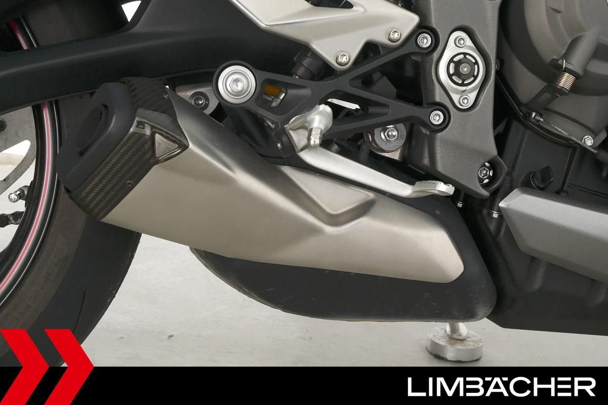 Eine Triumph Street Triple 765 RS in sehr gepflegtem Zustand u.a. mit Schaltassistent sowie Öhlins-Federbein hinten.