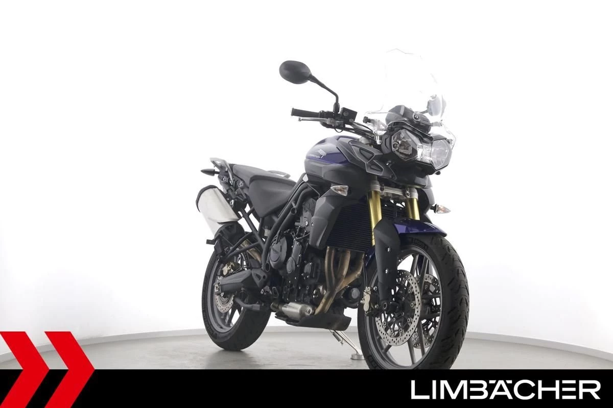 Eine scheckheftgepflegte Triumph Tiger 800 in gepflegtem Zustand u.a. mit Originalausstattung und Hauptständer.