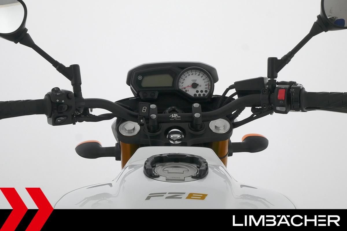 Eine Yamaha FZ 8 N aus zweiter Hand in gepflegtem Zustand u.a. mit Softbag-System incl. Tanktasche sowie Spiegler-Brems- und -Kupplungshebel.