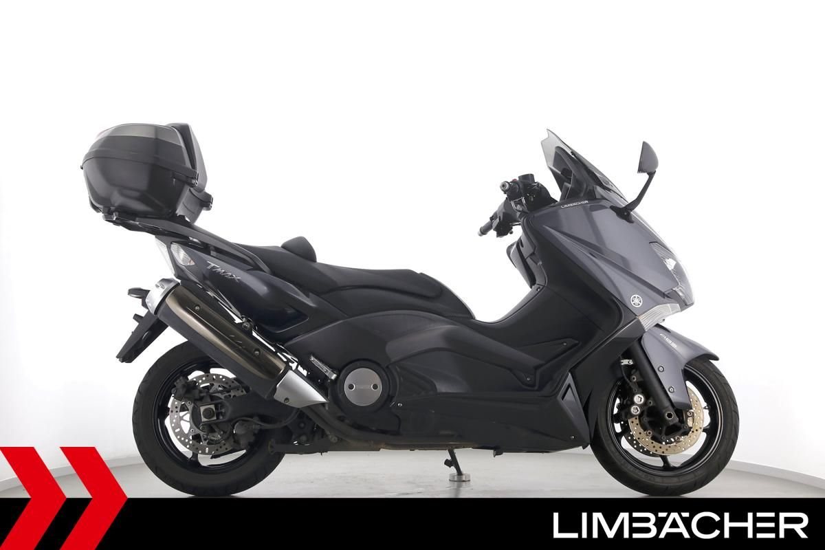 Ein Yamaha TMAX 530 aus zweiter Hand in gepflegtem Zustand u.a. mit Yamaha-Topcase gleichschliessend sowie Feststellbremse.