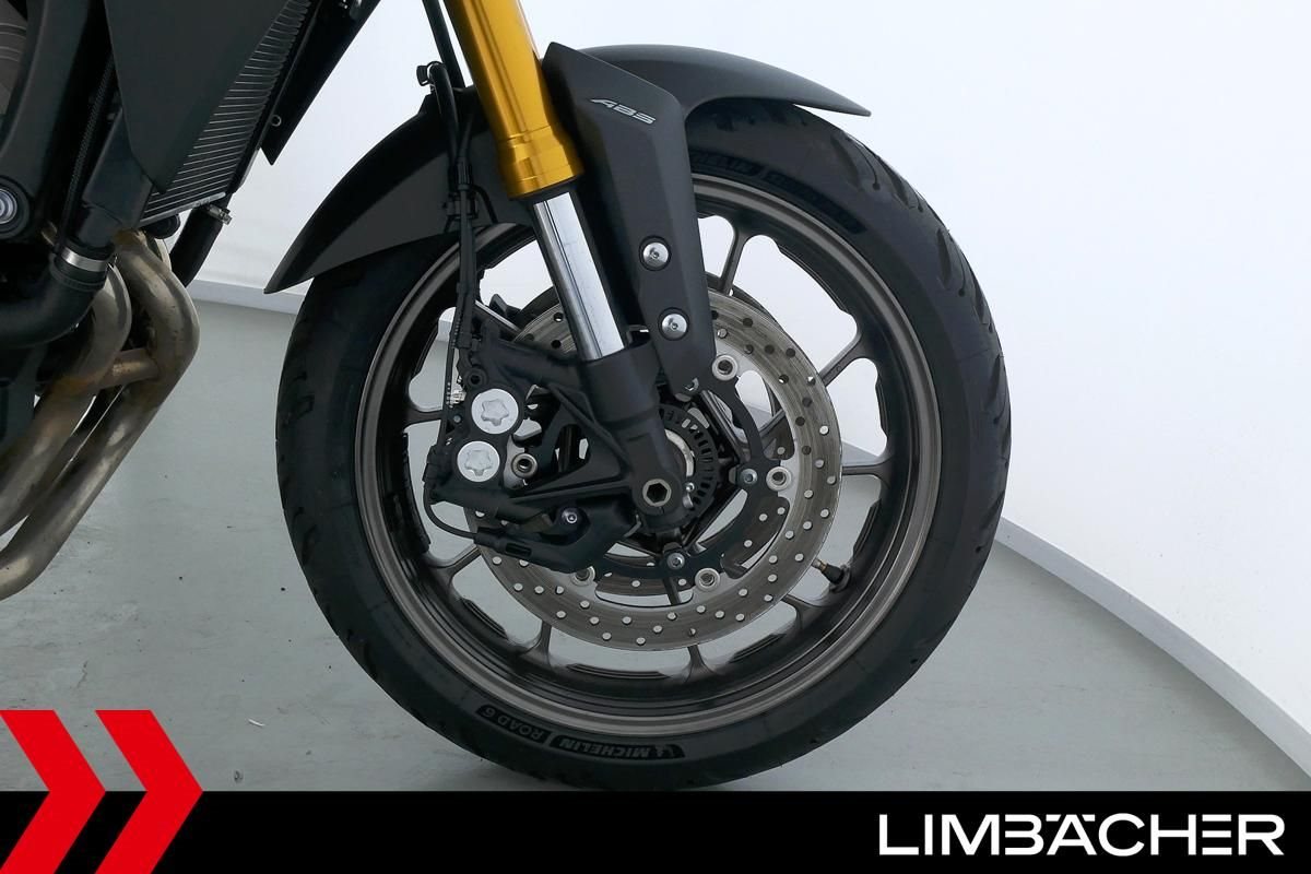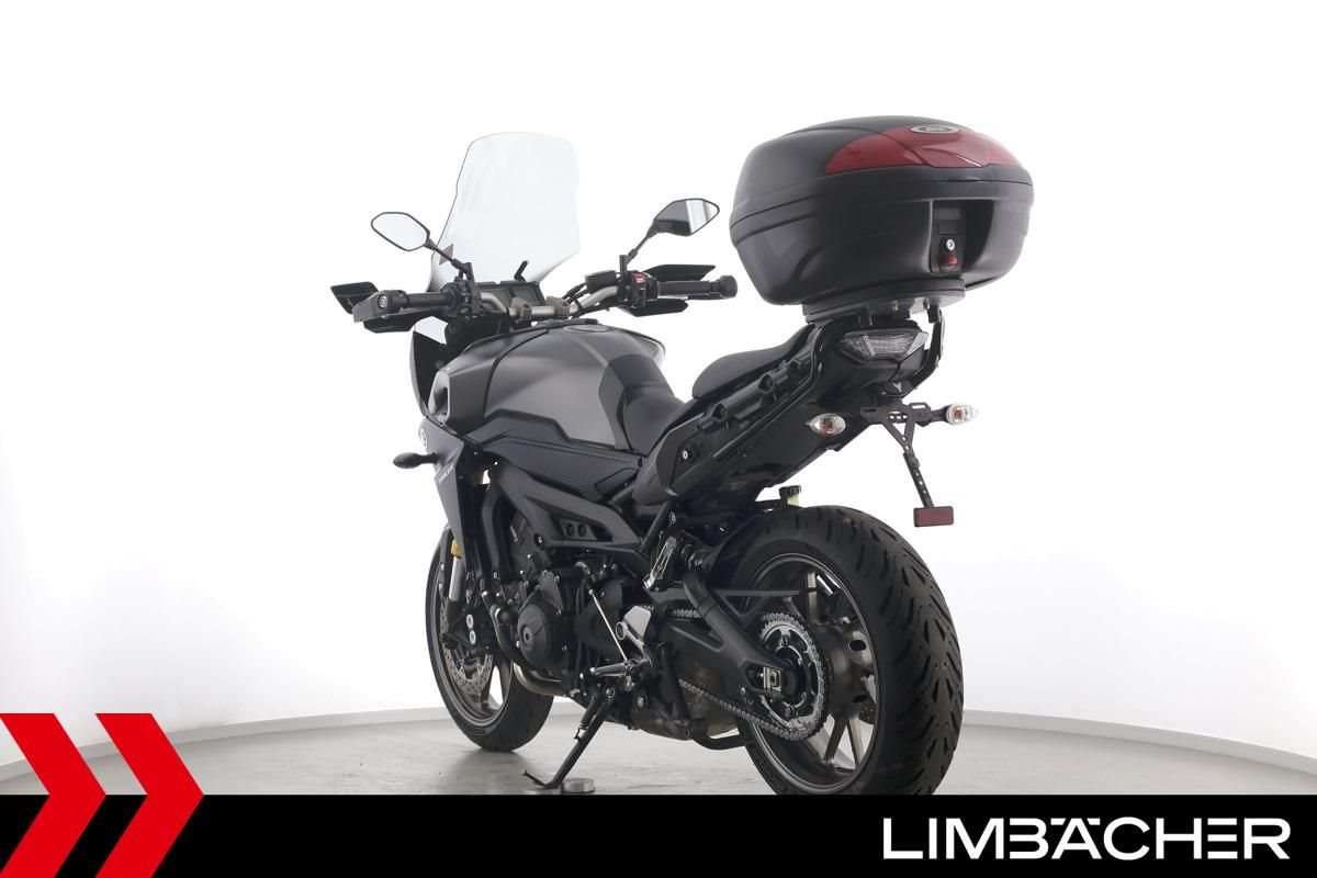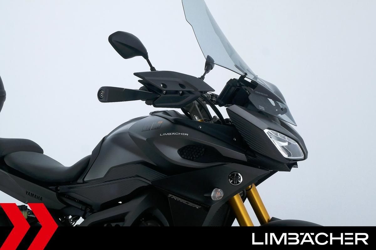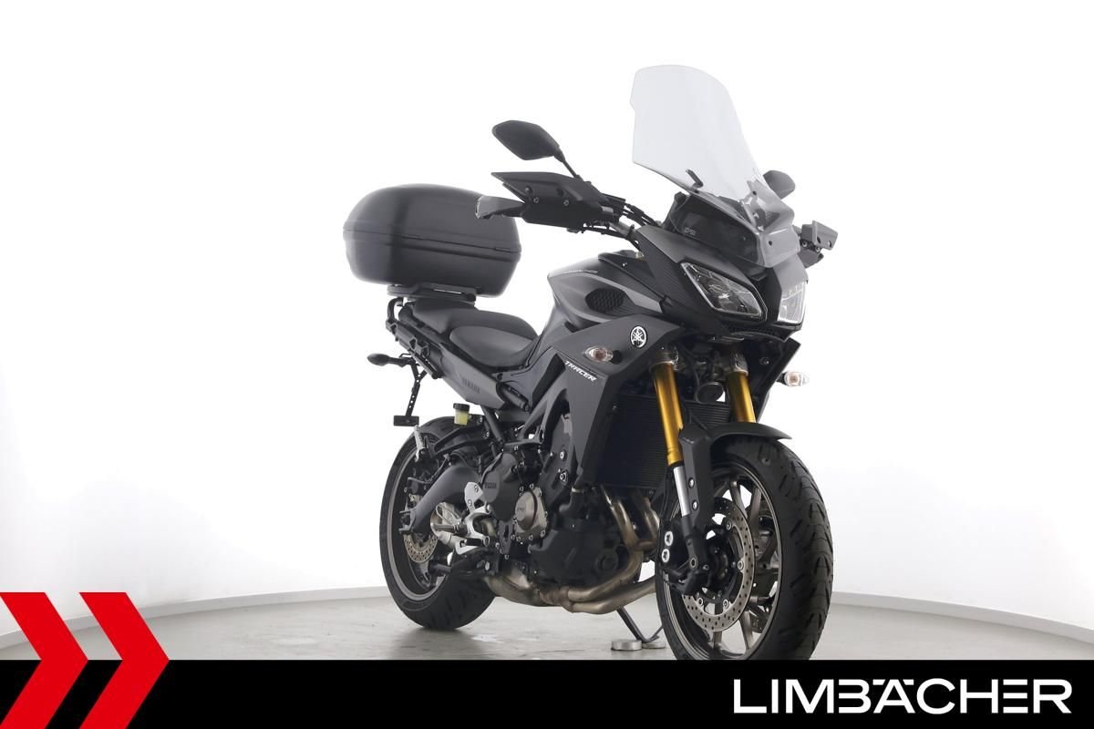 Eine scheckheftgepflegte Yamaha MT-09 Tracer aus zweiter Hand in gepflegtem Zustand u.a. mit kurzem Kennzeichenhalter sowie einer Tieferlegung.