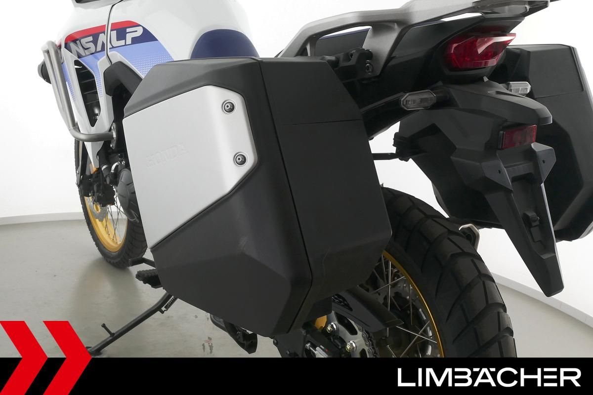 Eine Honda XL 750 Transalp als Neufahrzeug u.a. mit Seitenkoffer-System und Zusatzscheinwerfern.
