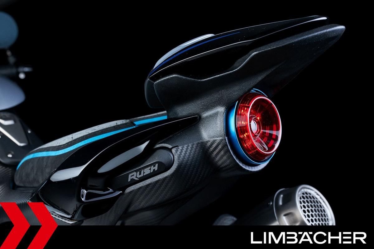Die MV Agusta Rush verkörpert die extremste und visionärste Interpretation des Hyper-Naked-Konzepts. Mit der Einführung der Titanio-Edition, die durch eine Nero-Intenso-Lackierung in Kombination mit Argento Magnum und Blu Titanio gekennzeichnet ist, setzt MV Agusta neue Maßstäbe.