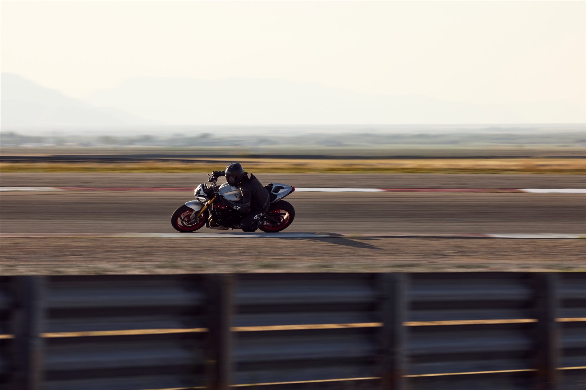 Erstklassige Leistung des 765 cm Dreizylindermotors, der auch die Rennmaschinen der Moto2antreibt mit spontanem Ansprechverhalten, und schnellerer Beschleunigung für maximale Performance auf der Rennstrecke.